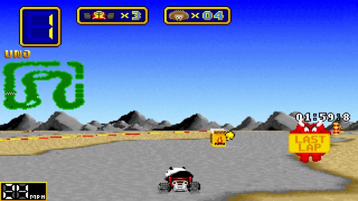 To give the game a fair shake, we have to take ourselves back to 1994. Now, Super Mario Kart had come out 2 years prior and it also is rather basic, however it has a few extra bells and whistles that make it a touch more interesting than Wacky Wheels. Which kind of sucks, because Mario Kart really set the standard. If both games had released kinda-sorta close to each other, it would be more understanding. But two whole years? That’s a lot of time to get things right and I feel that they really dropped the ball.